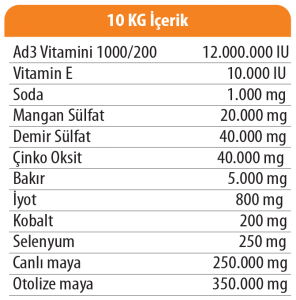 Besi hayvanlarının vitamin ve mineral ihtiyacını karşılar.